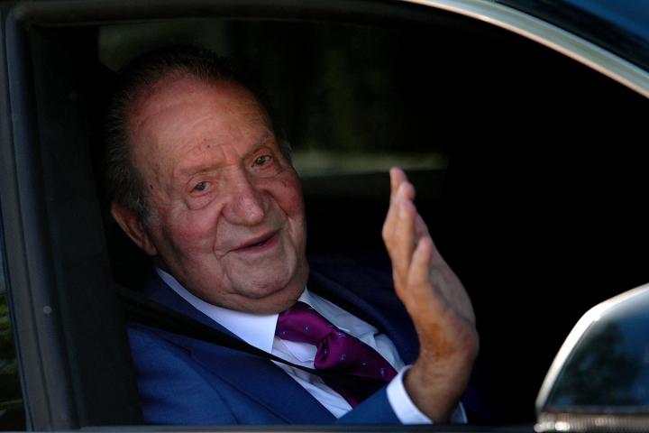 Al emérito de 84 años apenas sí se le ha podido ver a su entrada —mientras medio centenar de ‘fieles’ monárquicos jaleaba su llegada— y a la salida —ya con la caída de la tarde— en dirección a Barajas, de donde ha salido su avión particular alquilado. Dos instantes fugaces, sin bajarse del coche y sin tiempo para más que algún saludo y alguna sonrisa.