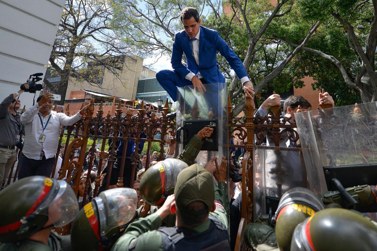 Por orden del Gobierno, grupos de militares y policías han estado impidiendo el acceso de los diputados opositores a la Cámara, esos que desde diciembre de 2015, cuando ganaron las elecciones, son mayoría (112 de 167), y que elevaron a Guaidó a la presidencia. El “presidente encargado” ha protagonizado encendidos choques con esas fuerzas, se le ha visto empujando puertas y escalando verjas, hasta lograr entrar en el Parlamento y ser reelegido como presidente de la Asamblea, con 100 votos a favor. Frente a él, el presidente que reconoce Maduro, Parra.