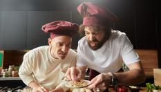 El tiempo se acaba y “tatatachaaannnnn... ¡y con el borde relleno de queso!”, muestran orgullosos la pizza recién salida del horno y el resultado final de sus recetas de ‘Saltamontes salteados sobre guisantes de los de antes’ y las brochetas con huevo crudo.