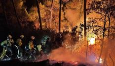 Los expertos han advertido de una posible lluvia de fuego que podría intensificar el incendio y por tanto no retomarán las labores hasta que se disipe.