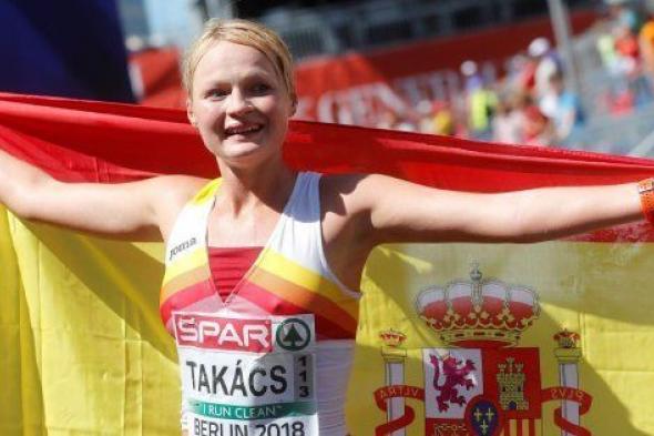 Julia Takacs, nacida en Budpest hace 29 años, dio a España la primera medalla en los campeonatos de Europa de Berlín con un tercer puesto en los 50 kilómetros marcha, que registró una victoria abrumadora de la portuguesa Inés Henriques, destacada desde el disparo de salida.