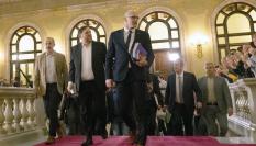 El máximo representante republicano ha sido el primero en intervenir. Después lo han hecho el exconsejero de Presidencia Jordi Turull, Raül Romeva y Joaquim Forn, de Relaciones Institucionales y del Interior, respectivamente. Pero antes les han recibido Quim Torra y Roger Torrent.