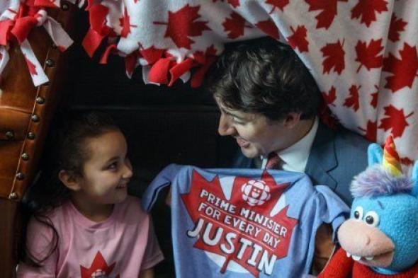 Trudeau no tuvo reparos en desarmar un sofá, colocar una manta con el emblema nacional, situar un peluche de vigilante y entrar con la niña a la tienda, a departir la agenda del día. Y, claro, acabó enamorando por enésima vez a las redes sociales.