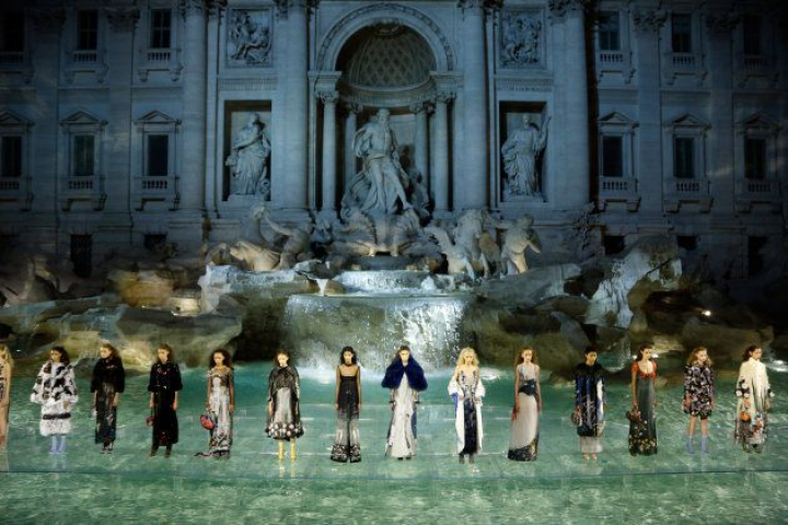 Convirtió el pabellón en un jardín, un supermercado, una playa o un casino, construyó dentro una torre Eiffel y un cohete y nos regaló altas dosis de fantasía, de esa que a veces parece estar reservada solo a la alta costura. Por no hablar de la colección con motivo del 90º aniversario de Fendi que presentó sobre la Fontana di Trevi en Roma.