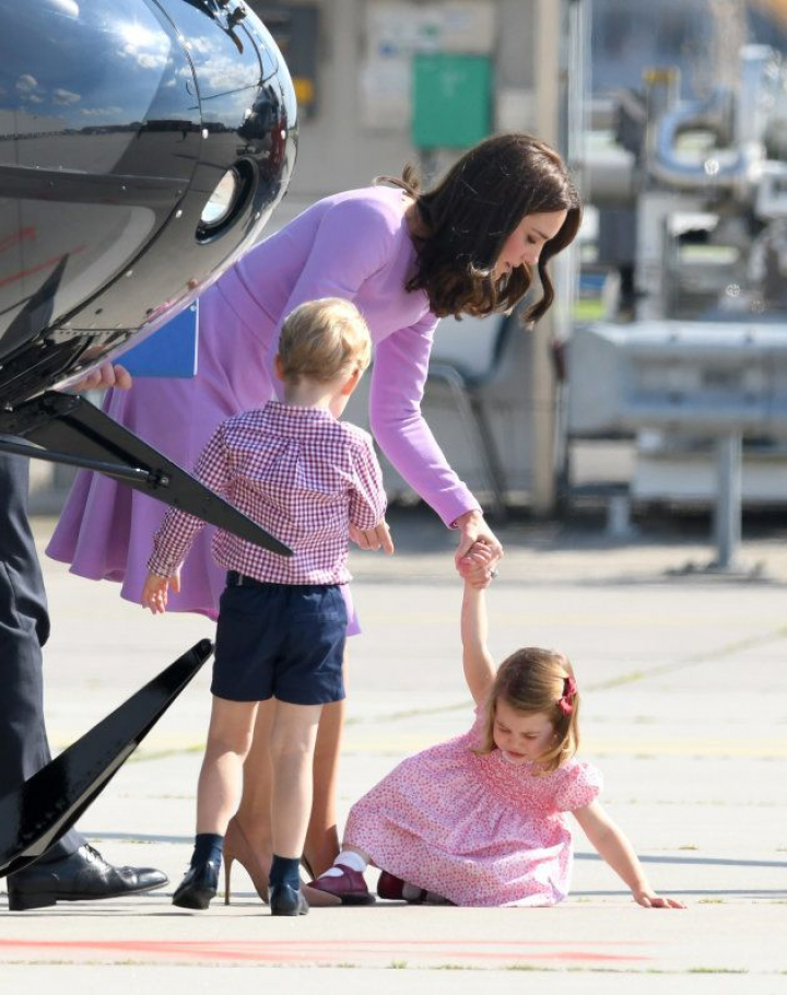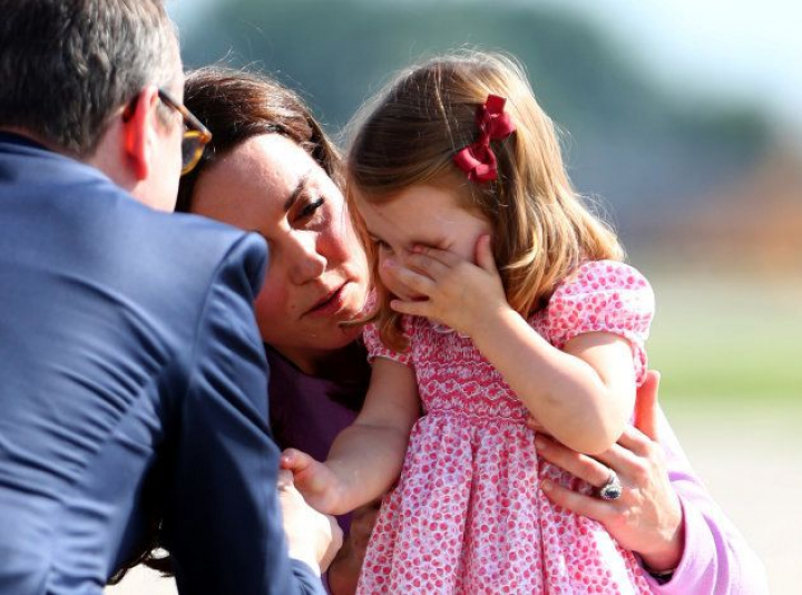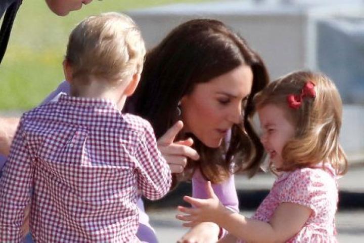 La familia volvía a Londres tras su viaje oficial de cinco días por Polonia y Alemania cuando se pudo ver a la pequeña de sus hijos, Carlota, de dos años, visiblemente enfadada. Por suerte, la duquesa de Cambridge calmó rápidamente a la niña, mostrando que es una madre como otra cualquiera.