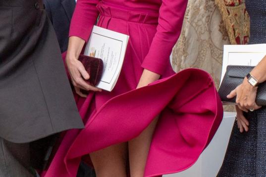 Hay pocas diferencias aparentes con respecto a 2012, cuando estrenó el vestido para una gala de presentación de los Juegos Olímpicos que se celebraron en Londres ese año, la más notable el cabello. En aquella ocasión, Middleton optó por recogido y lucía un tono ligeramente más oscuro del que lleva ahora. En ambas ocasiones optó por un bolso de mano del mismo tono y pendientes largos.