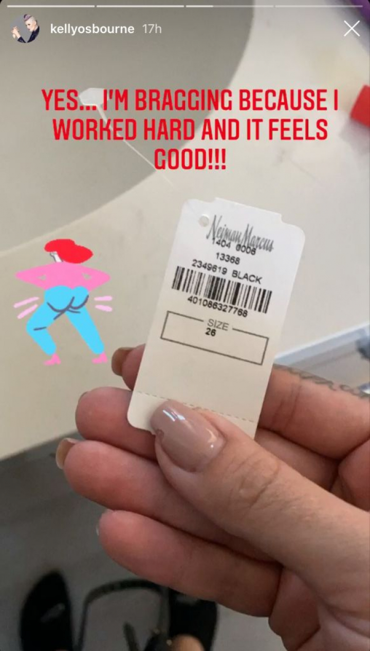 Osbourne, de 35 años, usa ahora la talla 26 (36, en Europa), según mostró ella misma este sábado en una publicación de Instagram Stories. “Sí... ¡Presumo porque trabajé duro y me siento bien!”, escribió al compartir una foto de la etiqueta de una prenda.