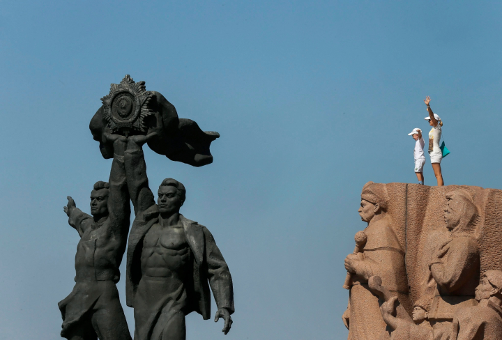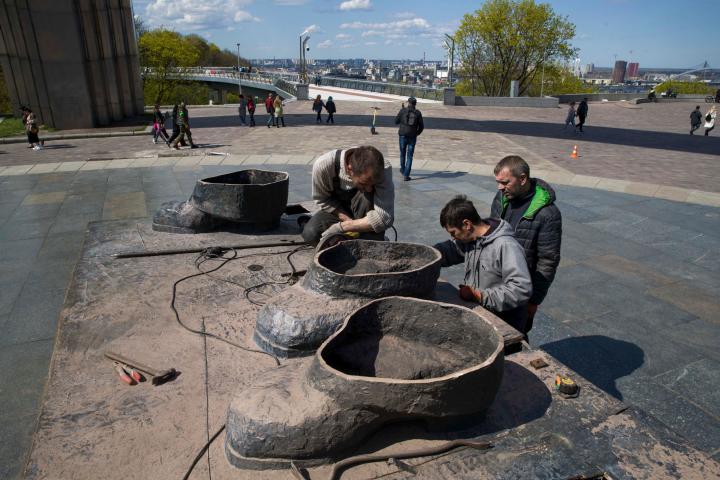 De la estatua que conmemoraba la amistad entre los pueblos de Rusia y Ucrania en el centro de Kiev apenas quedan ya unos pedazos. Se alzó como alegoría a la unidad, pero el hueco que ha dejado es ahora el símbolo de la enemistad y de la guerra con el que cada día se toman fotografías cientos de ucranianos.