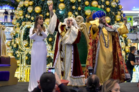 Vestidos de Reyes Magos, Kiko Rivera, Omar Montes y Luis Rollán protagonizaron un evento en un centro comercial de Marbella que tuvo que ser desalojado por la Policía Local tras las aglomeraciones que se produjeron para verlo.