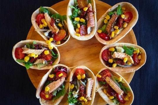 Ésta es una forma estupenda de presentar una propuesta colorida, ligera y deliciosa cuando se sientan muchos en la mesa. Consulta la receta en CookPad.