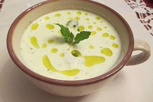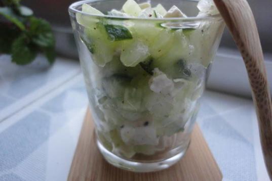 Necesitarás pepino, manzana amarilla, yogur griego natural, hierbabuena, aceite, sal y vinagre de manzana. Aquí puedes seguir paso a paso cómo se prepara.