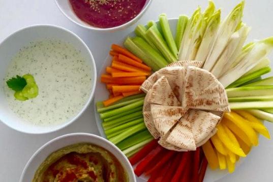 Además de ser tan colorido que entra por los ojos, es perfecto para compartir a modo de picoteo. Aquí puedes ver cómo se prepara y cómo se hacen las tres salsas: hummus de remolacha, de aguacate y tzatziki.