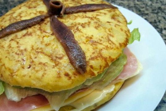 Esta en concreto lleva mayonesa, tomate, queso en lonchas, lechuga, anchoas y jamón dulce. Puedes leer la receta aquí o verla en vídeo en este enlace.