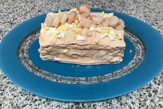 Se prepara con placas de lasaña, palitos de cangrejo, huevo duro, salsa rosa, jamón york y gambas. Se guarda en el frigorífico y ¡lista para una cena de lo más fresquita! Lee la receta completa en CookPad.