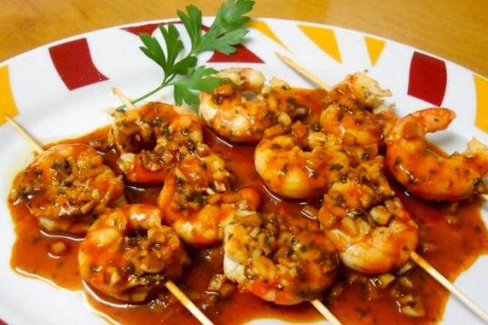 El aliño lleva ajo, pimentón, sal, perejil, vino y aceite de oliva. Puedes leer cómo se prepara en CookPad.