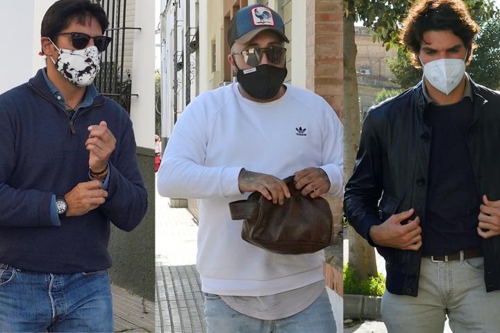 Fran Rivera, Kiko Rivera y Cayetano Rivera en su visita a su tío 'Riverita' a Barbate este miércoles.GTRES