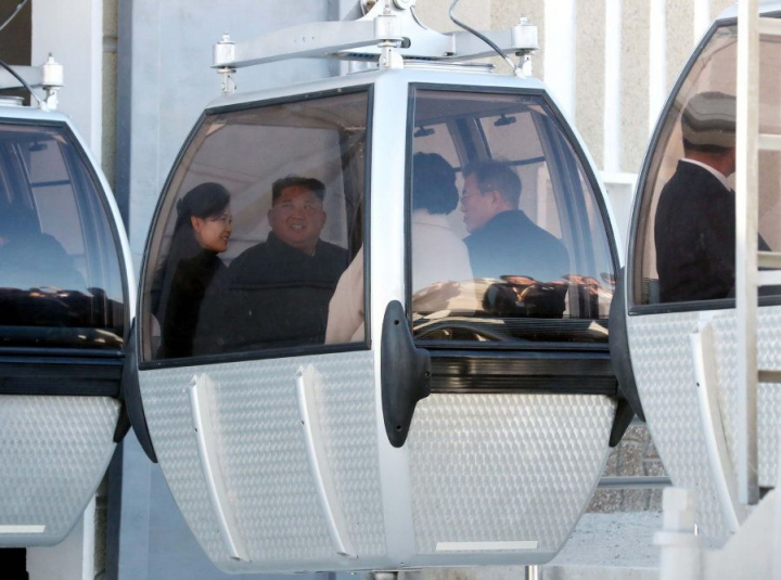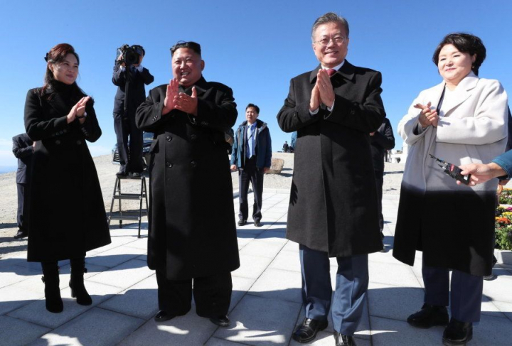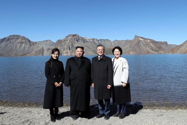 Prueba del bueno momento por el que pasan, este jueves, Moon y Kim, acompañados por sus esposas, han visitado el monte Paektu, en la frontera con China. La montaña, de 2.744 metros de altura, está considerada sagrada por todos los coreanos. Según se cuenta, en ella nació Dangun, el fundador legendario del reino coreano.