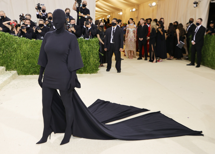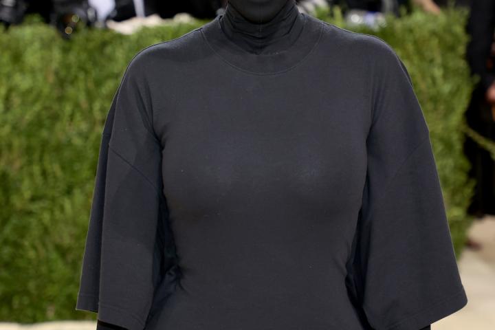 Kardashian ha aparecido vestida de pies a cabeza con un diseño negro de Demna Gvasalia para Balenciaga que cubría todo su cuerpo, incluido su rostro, tapado por un pasamontañas.