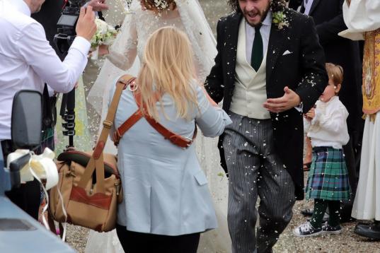 Entre los compañeros presentes en la boda han estado Emilia Clarke, que encarnó a Daenerys Targaryen, y Peter Dinklage, que actuó como Tyrion Lannister, quienes llegaron para la boda el viernes a Aberdeen.