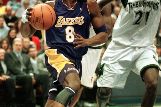 Los Angeles Lakers' Kobe Bryant drives past Minnesota Timberwolves' Kevin Garnett in the first quarter 17 December 1999 at the Target Center in Minneapolis, Minnesota. The Lakers won 97-88. AFP PHOTO/CRAIG LASSIG (Photo by CRAIG LASSIG / AFP) (P...