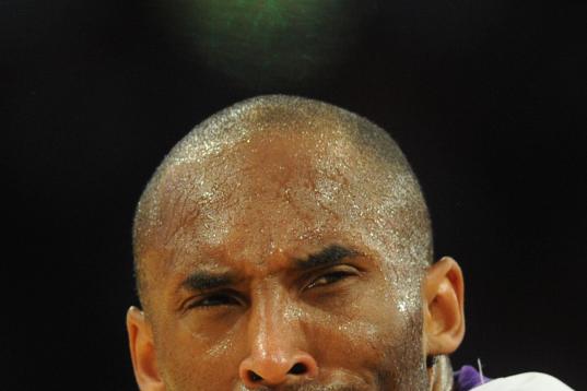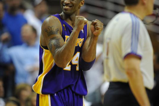 LA Lakers guard Kobe Bryant gestures before the Boston Celtics went on to win 103-94 in game two of the NBA finals at the Staples Center in Los Angeles on June 6, 2010. The defending champion Los Angeles Lakers are not only seeking their 16th N...