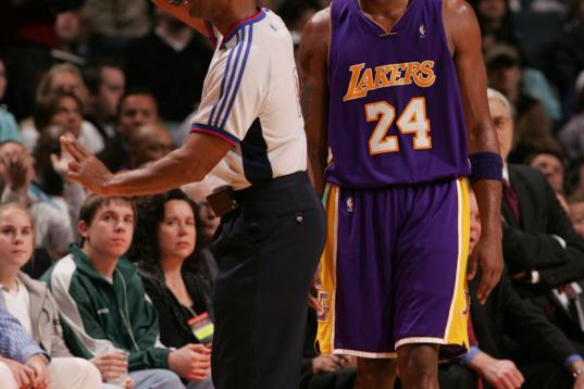 LA Lakers guard Kobe Bryant talks to the referee before the Boston Celtics went on to win 103-94 in game two of the NBA finals at the Staples Center in Los Angeles on June 6, 2010. The defending champion Los Angeles Lakers are not only seeking ...