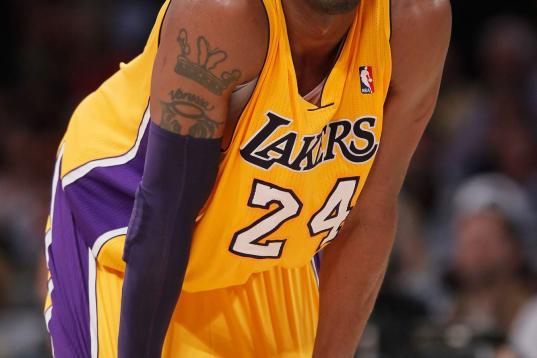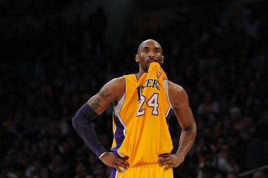 LOS ANGELES - DECEMBER 29: Kobe Bryant #24 of the Los Angeles Lakers looks on during the game against the New York Knicks at Staples Center on December 29, 2011 in Los Angeles, California. NOTE TO USER: User expressly acknowledges and agrees t...