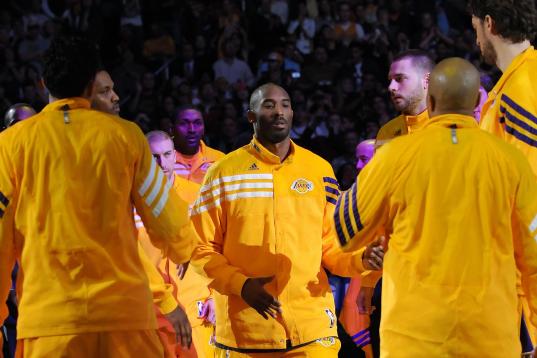 LOS ANGELES - DECEMBER 29: Kobe Bryant #24 of the Los Angeles Lakers is introduced before the game against the New York Knicks at Staples Center on December 29, 2011 in Los Angeles, California. NOTE TO USER: User expressly acknowledges and agr...