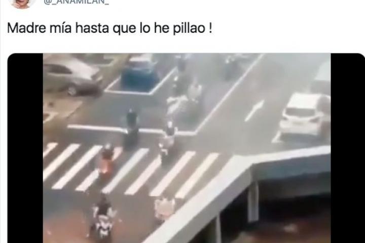 Ana Milán, la popular actriz española, ha publicado un vídeo sobre un cruce en el que varias motos y coches giran hacia la derecha de la pantalla y, de repente, desaparecen de la imagen.
