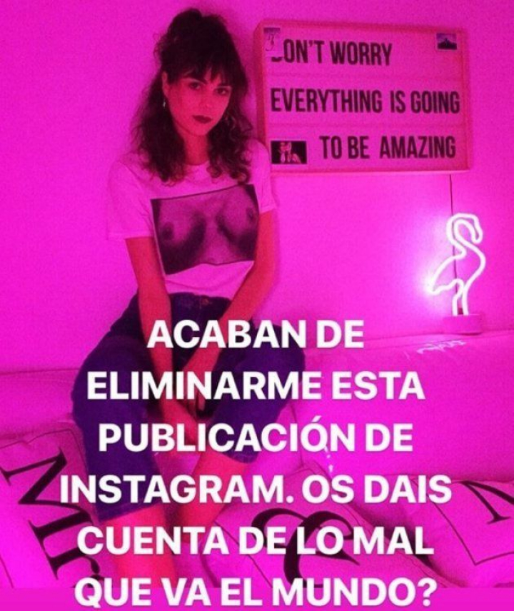 Después de que Instagram haya borrado la primera foto, la actriz la ha vuelto a compartir con una pequeña modificación para esquivar la implacable censura. La actriz no ha podido (ni querido) ocultar su enfado y junto a la imagen ha escrito: "A ver si así Instagram no me censura una foto en la salen unas tetas en UNA camiseta. Porque qué horror, qué porno e indecente es todo. Aquí todos vamos de progres y de libertad y de free the nipple [libera el pezón] pero no. Ni 5 minutos han tardado en eliminar esta publicación".