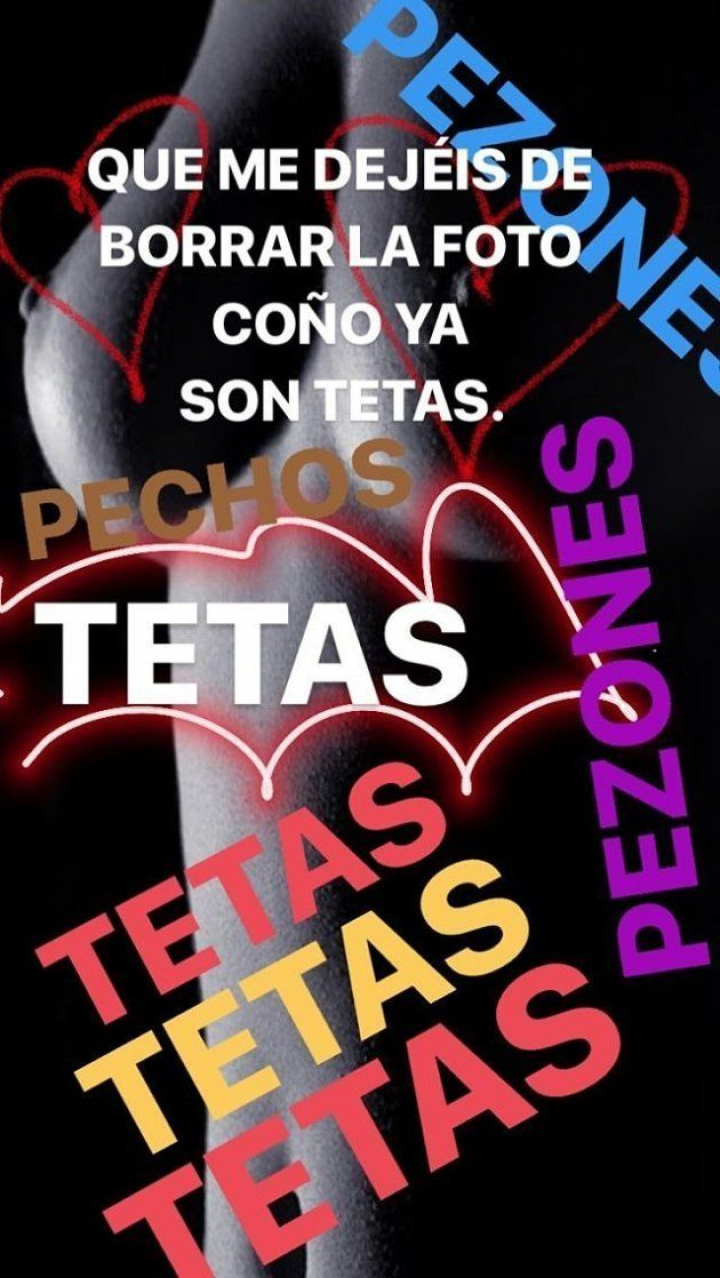Y para terminar, la actriz se ha quedado del todo a gusto, con una última imagen, a modo de conclusión. "Que me dejéis de borrar la foto ya, coño. Son tetas", concluye.