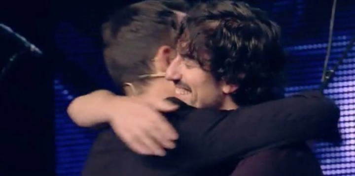 Al responder el concursante que sí, Mejide salió al escenario para darle un abrazo. En ese momento, la cámara enfocó por primera vez a Escanes aplaudiendo en el palco.