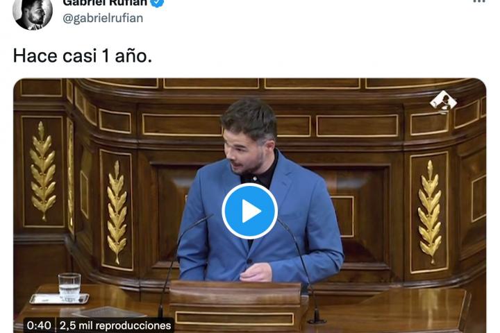Gabriel Rufián —tal y como ha hecho Pablo Iglesias— ha tirado de hemeroteca en la tarde del martes para recuperar un fragmento de una intervención suya en el Congreso dirigida a Pablo Casado.