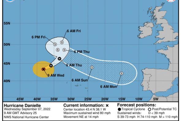 La Agencia Estatal de Meteorología (AEMET) ha confirmado a través de Twitter que el huracán Danielle “se acercará” a la Península a comienzos de la próxima semana, pero ha enviado un mensaje de calma y tranquilidad.