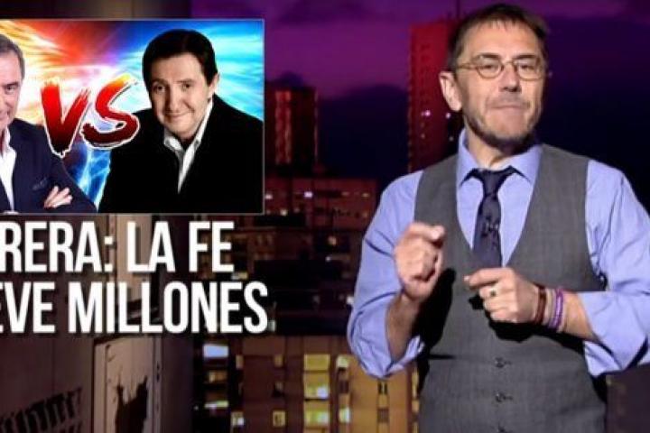 "Caritas recibió 6 millones de la Iglesia. Herrera ha recibido 7 millones por destilar odio en la COPE (financiada por los obispos)". El secretario de Organización de Podemos, Pablo Echenique, ha publicado un tuit, que ha generado un intenso debate en la red social, alabando al cofundador de Podemos Juan Carlos Monedero por su monólogo —en el programa En la Frontera, en PúblicoTV— contra el periodista de la Cope Carlos Herrera.