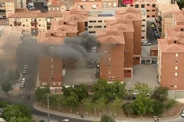 En uno de los edificios de la ciudad se podía ver una enorme columna de humo negro.