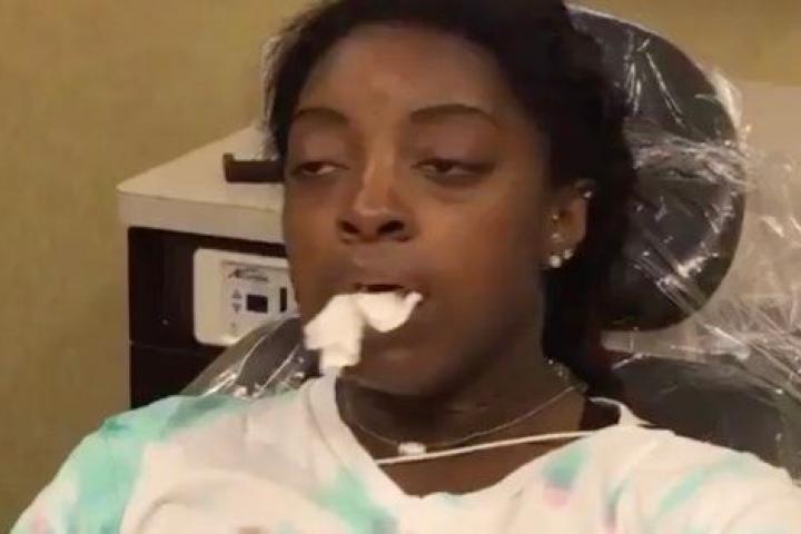 La gimnasta ha compartido un vídeo en el que se la puede sedada tras su visita al dentista.
