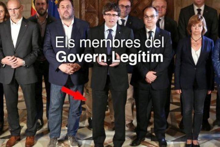 El tuitero The Observer —@RevoluSSSion— ha aprovechado la imagen publicada por "los miembros del Gobierno legítimo" de Cataluña, en la que han eliminado la figura del exconseller de Empresa, Santi Vila, —dimitido horas antes de la declaración de la DUI— dejándose una pierna, para lanzar una broma en Twitter que ya es viral.