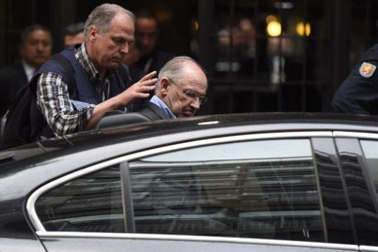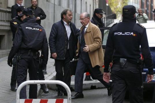 El exvicepresidente del Gobierno con el PP, Rodrigo Rato, a la salida de la Audiencia Nacional de Madrid tras declarar por las tarjetas black, hace ahora un año.REUTERS