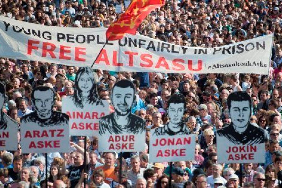 Manifestación en Pamplona, el pasado 16 de junio, pidiendo la libertad para los procesados de Alsasua.AFP / Getty Images