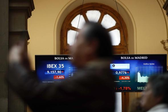 A las 9.15, con la prima de riesgo en 75 puntos básicos, el principal indicador de la Bolsa española, el IBEX, se deja ese leve 0,15 %, hasta los 9.176,60 puntos, con lo que las ganancias anuales se desinflan hasta el 7,46 %.