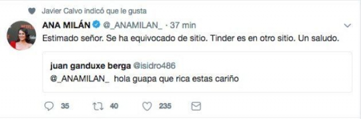 La brillante respuesta de Ana Milán a un hombre que se propasó en Twitter