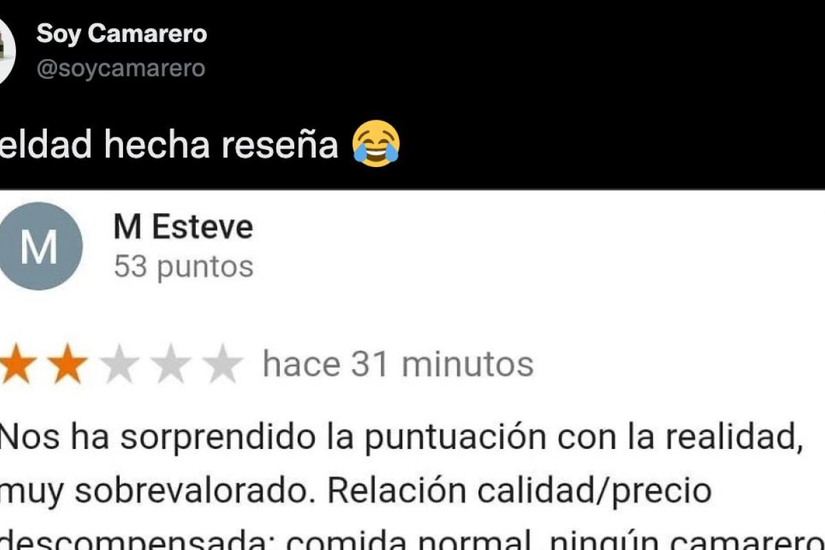 La cuenta Soy Camarero, que se encarga de publicar contenido relacionado con el mundo de la hostelería, se ha hecho eco en Twitter tanto de la reseña de un comensal como de la particular respuesta que ha recibido por parte del restaurante.