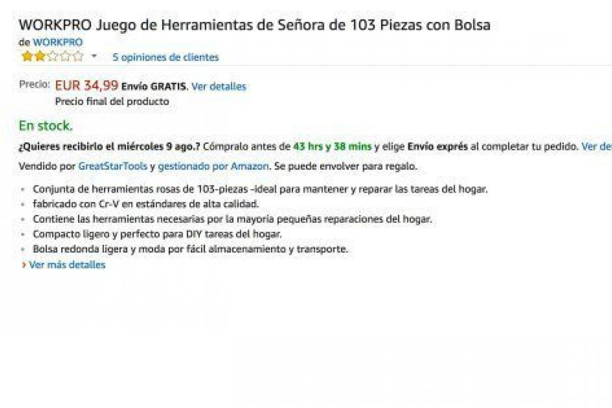 El kit vale unos 35 euros y consta de 103 piezas de herramientas rosas "ideal para mantener y reparar las tareas del hogar".