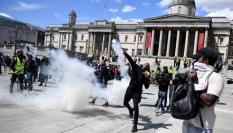 LONDON, ENGLAND - JUNE 01: Protesters take part in a 'Black Lives Matter' demonstration on June 01, 2020 in London, England. Protests and riots continue across American following the death of George Floyd, who died after being restrained by Minn...