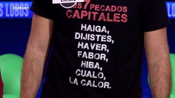 "Haiga, dijistes, haver, fabor, hiba, cualo, la calor", se podía leer en la camiseta oscura de Emilio. Además, la cámara captó el momento en el que Los Lobos, junto al resto del público, aplaudieron la reivindicación educativa del concursante.