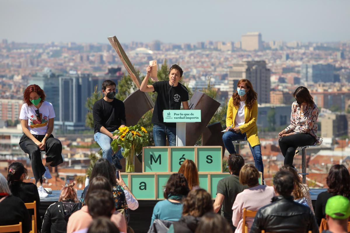 En el acto han participado, entre otros, la candidata, Mónica García, arropada por su número 5, María Pastor; su número 2, Pablo Gómez Perpinyà; el líder de Más País, Íñigo Errejón, y la portavoz en el Ayuntamiento de Madrid, Rita Maestre.