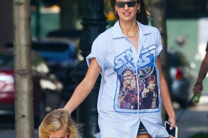 La modelo Irina Shayk está levantando pasiones en todo el mundo gracias a una camisa-vestido que se ha puesto para salir a pasear con su hija Lea por Nueva York.