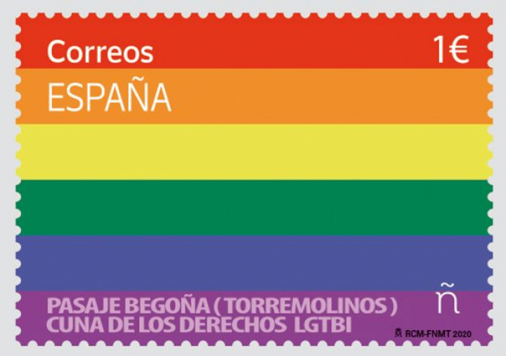 El diseño del sello, que se vende a un precio de 1 euro, hace referencia al Pasaje Begoña, un enclave en Torremolinos en el que la policía franquista llevó a cabo una redada en 1971, que acabó con 300 detenidos y con el cierre de los primeros bares de ambiente del país. Este enclave fue declarado Lugar de Memoria Histórica y cuna de los Derechos y Libertades LGTBI en 2019.