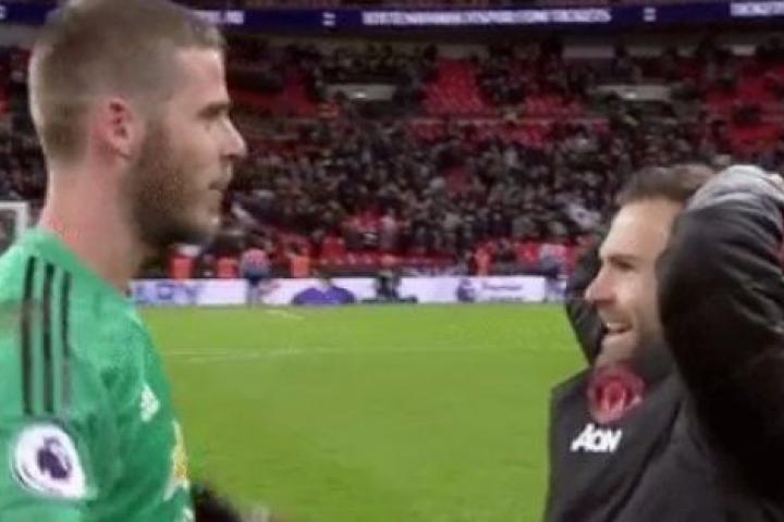 Una vez ya había sonado el pitido final, Mata fue a abrazar y a felicitar a De Gea llevándose las manos a la cabeza por la actuación del guardameta. La cuenta de Twitter de Sky Sports subió el momento con un "encuentra a alguien que te mire como Juan Mata lo hace a David De Gea...", a lo que el mediapunta español respondió: "Sé que todos os sentís como yo".
